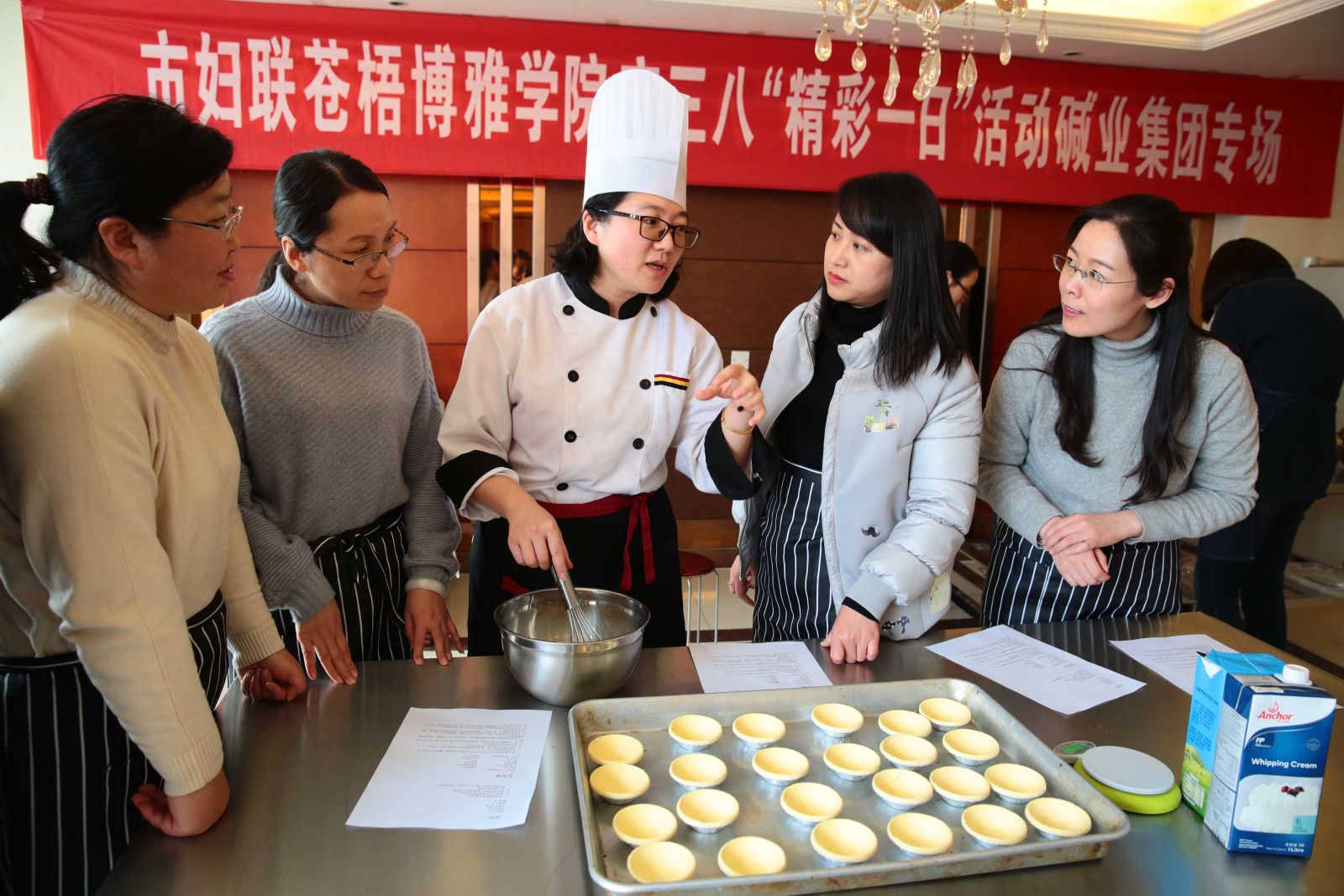 烘焙培訓(xùn)中,只見大家稱量、打蛋、調(diào)黃油,在老師的指導(dǎo)和幫助下,紛紛化身“小廚娘”,投身“甜蜜事業(yè)”。當(dāng)打開烤箱的那一刻,香味四溢,現(xiàn)場(chǎng)彌漫著快樂和幸福的味道。