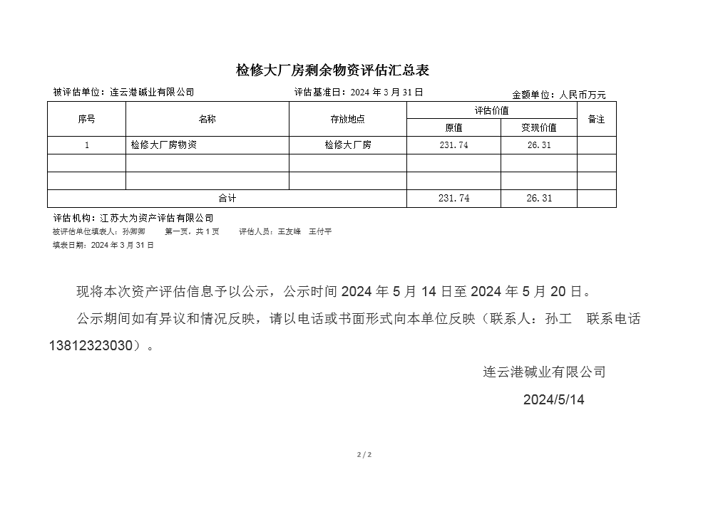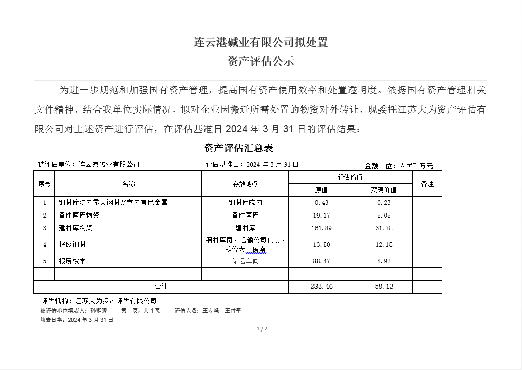 檢修廠(chǎng)房及鋼材庫物資資產(chǎn)評估公示