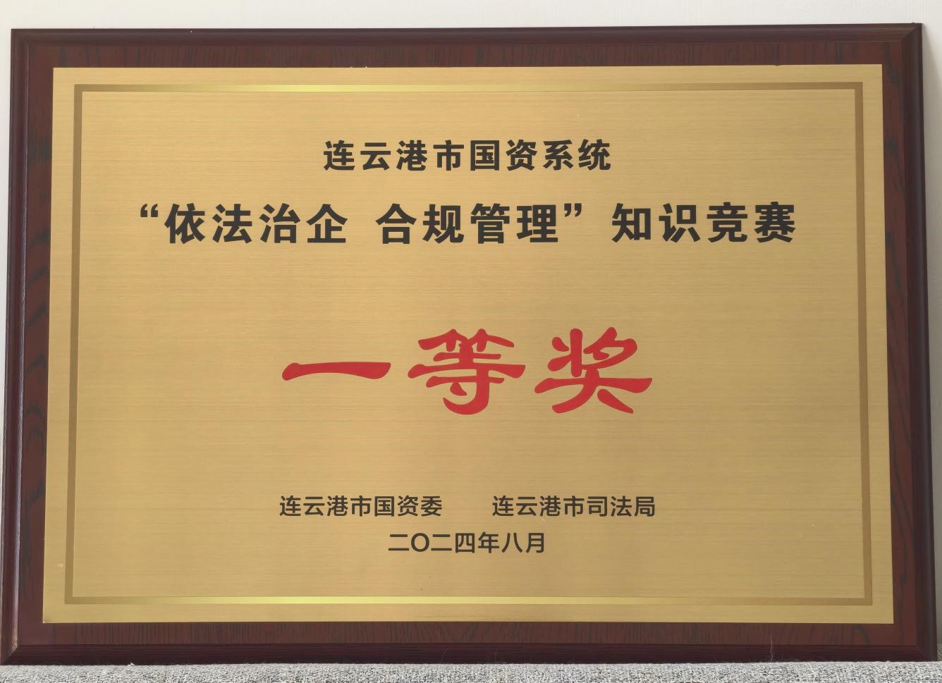 8月27日,由連云港市國資委、市司法局聯(lián)合舉辦的全市國資系統“依法治企合規管理”知識競賽決賽在連云港市廣播電視臺成功舉辦。我公司代表隊脫穎而出,榮獲一等獎。
