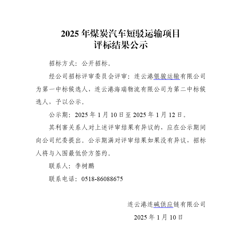 2025年煤炭汽車(chē)短駁運輸項目評標結果公示