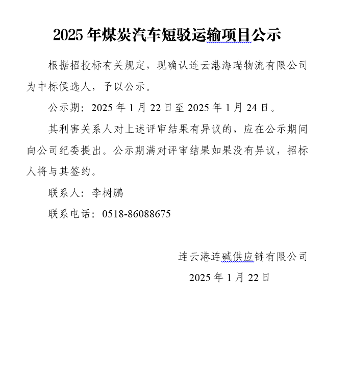 2025年煤炭汽車(chē)短駁運輸項目公示
